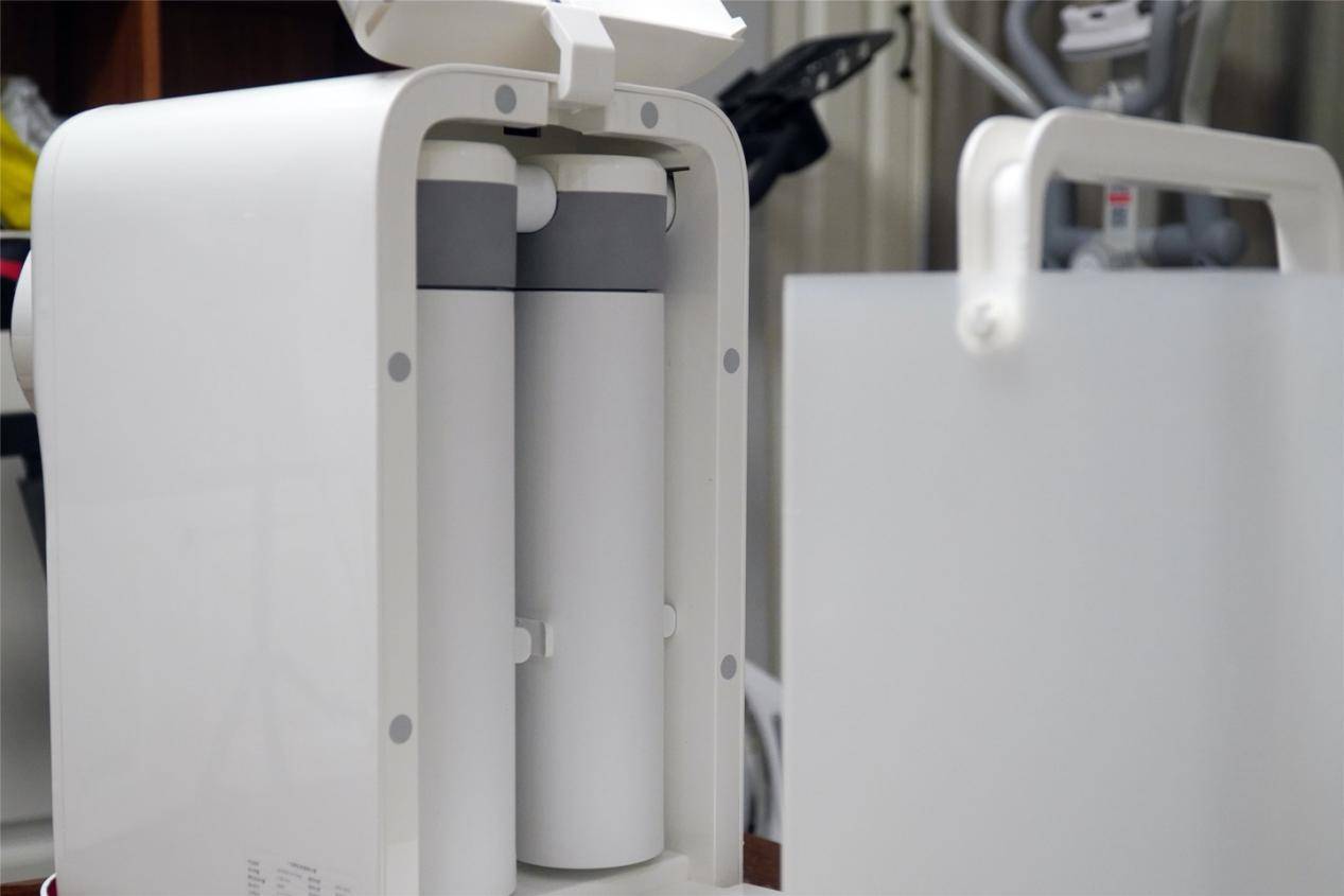 水箱為上開蓋取出,帶提手設計,7L的容量在目前即熱型一體凈飲機中也算是大容量的。對于2~4口之家來說,基本兩天加一次水即可。